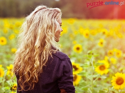 Puzzle Blondynka, Kobieta, Słoneczniki