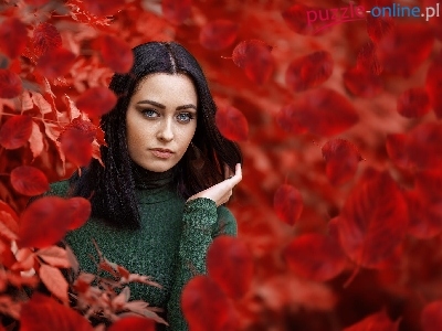 Puzzle Brunetka, Kobieta, Liście