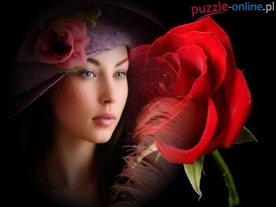 Puzzle Czerwona, Kobieta, Róża