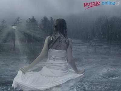 Puzzle Deszcz, Kobieta, Potop