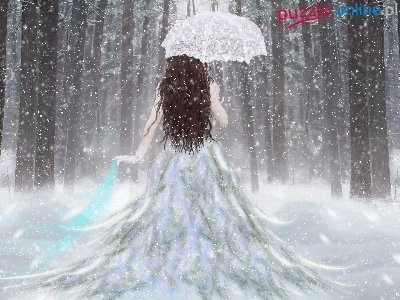 Puzzle Śnieg, Fantasy, Kobieta, Parasol