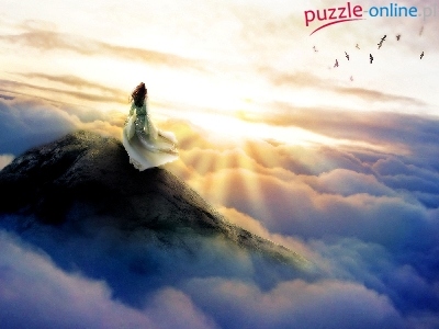 Puzzle Góra, Kobieta, Niebo