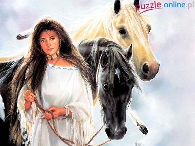 Puzzle Indianka, Kobieta, Konie