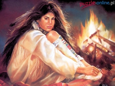 Puzzle Indianka, Kobieta, Ognisko