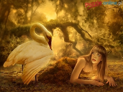 Puzzle Jesień, Kobieta, Łabędź