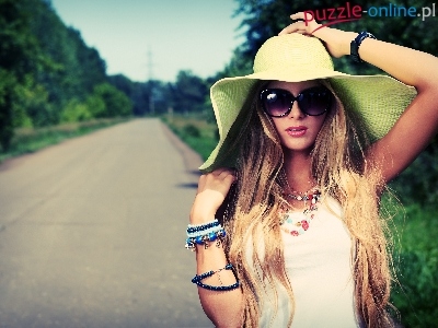 Puzzle Kapelusz, Kobieta, Droga