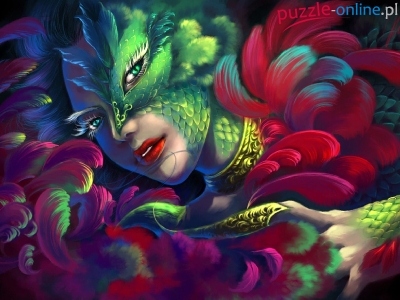 Puzzle Kolorowe, Kobieta, Pióra