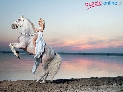 Puzzle Kobieta, Biały, Koń, Jezioro