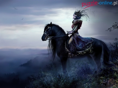 Puzzle Koń, Kobieta, Mgła
