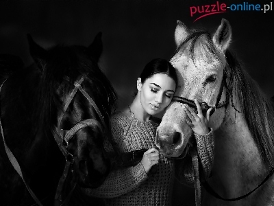 Puzzle Konie, Kobieta, Przyjaźń