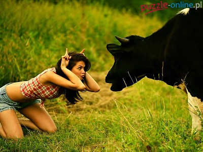 Puzzle Krowa, Kobieta, Śmieszne