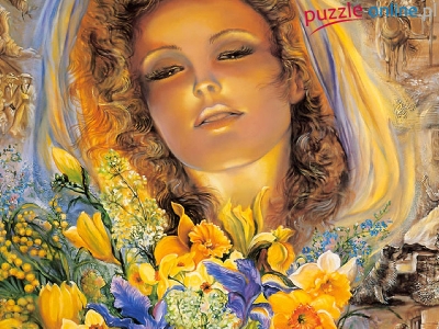 Puzzle Kwiaty, Kobieta, Budynek