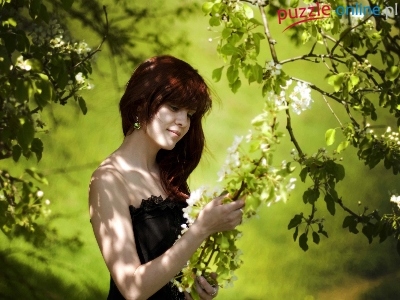 Puzzle KwitnÄ…ce, Kobieta, Drzewa