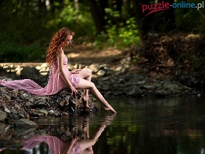 Puzzle Las, Kobieta, Jezioro