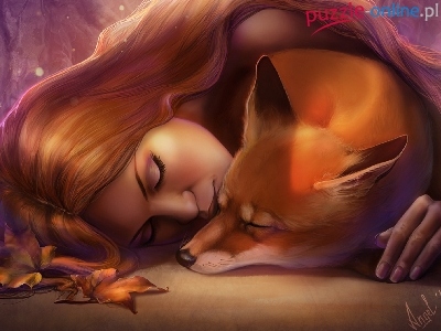Puzzle Lis, Kobieta, Liście
