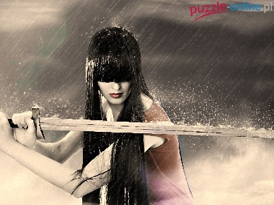 Puzzle Miecz, Kobieta, Deszcz