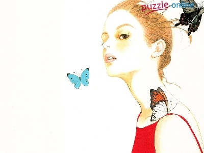 Kobieta, Rysunek, Rudowłosa, Młoda, Motyle