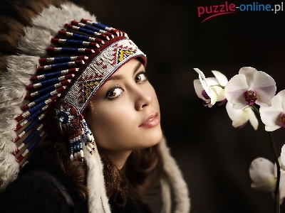 Puzzle Pióropusz, Kobieta, Kwiatki