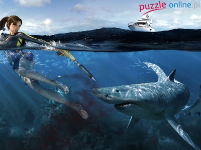 Puzzle Rekiny, Kobieta, Woda