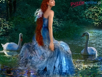 Puzzle Rzeka, Kobieta, Łabędzie