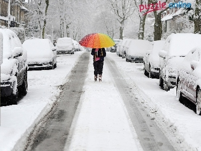 Kobieta, Ulica, Parasolka, Zima, Samochody, Kolorowa
