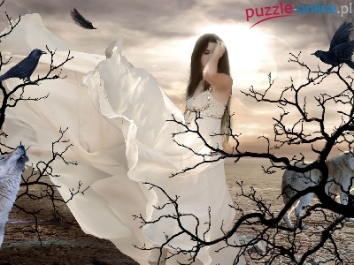Puzzle Wilki, Kobieta, Ptaki