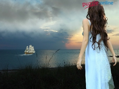 Puzzle Woda, Kobieta, Żaglowiec
