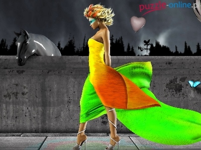 Puzzle Zielona, Kobieta, Suknia