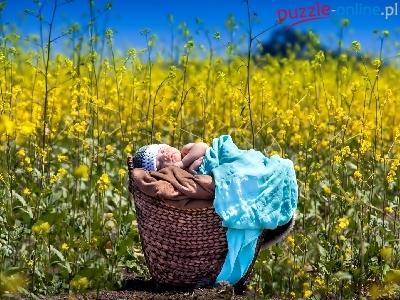 Kosz, Rzepak, Śpiące, Dziecko, Koc