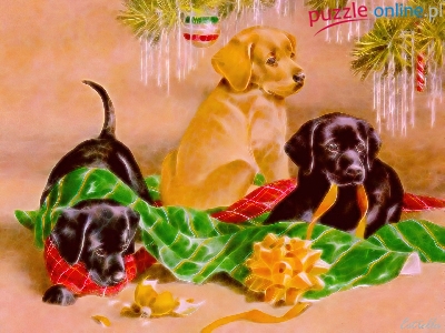Puzzle Kocyk, Trzy, Pieski, Kokarda