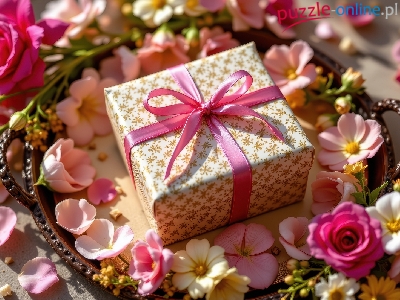 Pudełko, Kokarda, Prezent, Taca, Kwiaty