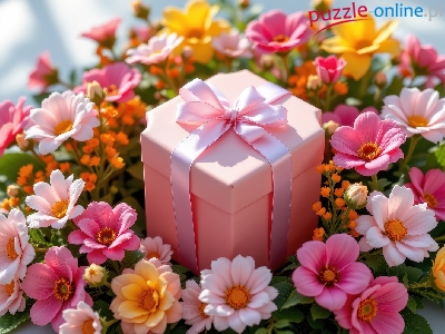 Różowe, Kokarda, Pudełko, Prezent, Kwiaty