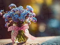 Różowa, Niezapominajki, Wazonik, Grafika AI, Kwiaty, Niebieskie, Kokardka