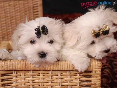 Kosz, Szczeniaczki, Maltese, Dwa, Kokardki, Maltańczyk