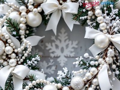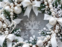 Boże Narodzenie, Bombki, Wieniec, Białe, Grafika AI, Kokardy