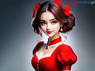Sukienka, Dziewczyna, Czerwona, Kokardy, Szminka, Czerwona, Czerwone