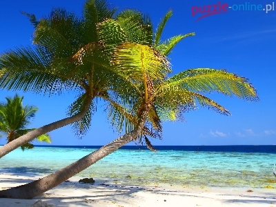 Kokosowe, Plaża, Pochyłe, Palmy, Niebo