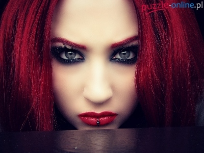 Kolczyk, Twarz, Czerwone, Włosy, Makijaż