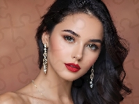 Makijaż, Dziewczyna, Brunetka, Kolczyki
