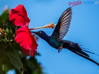 Puzzle Koliber, Hibiskus, Kwiat, Ptak