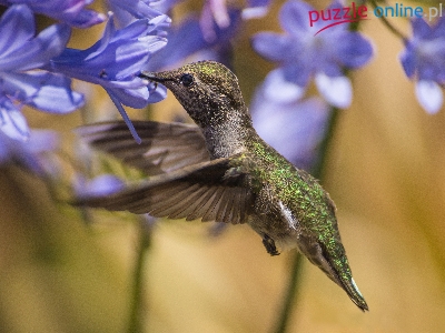 Puzzle Kwiaty, Koliber, Fioletowe