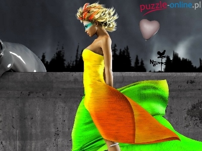 Puzzle Kolorowa, Dziewczyna, Koń, Sukienka