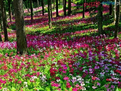 Puzzle Kolorowe, Drzewa, Łąka, Kwiaty