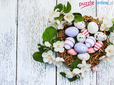 Kwiatki, Deski, Białe, Wielkanoc, Koszyk, Pisanki, Święta, Kolorowe