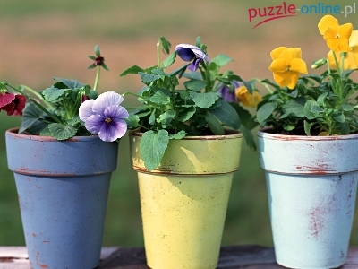 Puzzle Bratki, Kolorowe, Doniczki