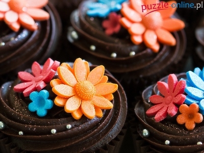 Puzzle Kolorowe, Czekoladowe, Ciasteczka, Kwiatki
