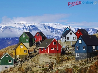 Puzzle Domki, Kolorowe, Góry