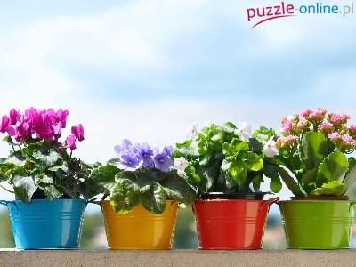 Puzzle Kolorowe, Kwiaty, Doniczkowe, Wiaderka