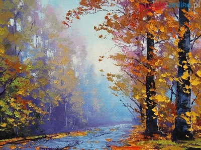 Puzzle Kolorowe, Jesień, Drzewa, Liście