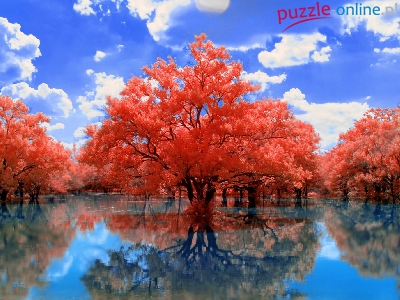 Puzzle Kolorowe, Jezioro, Drzewa, Liście